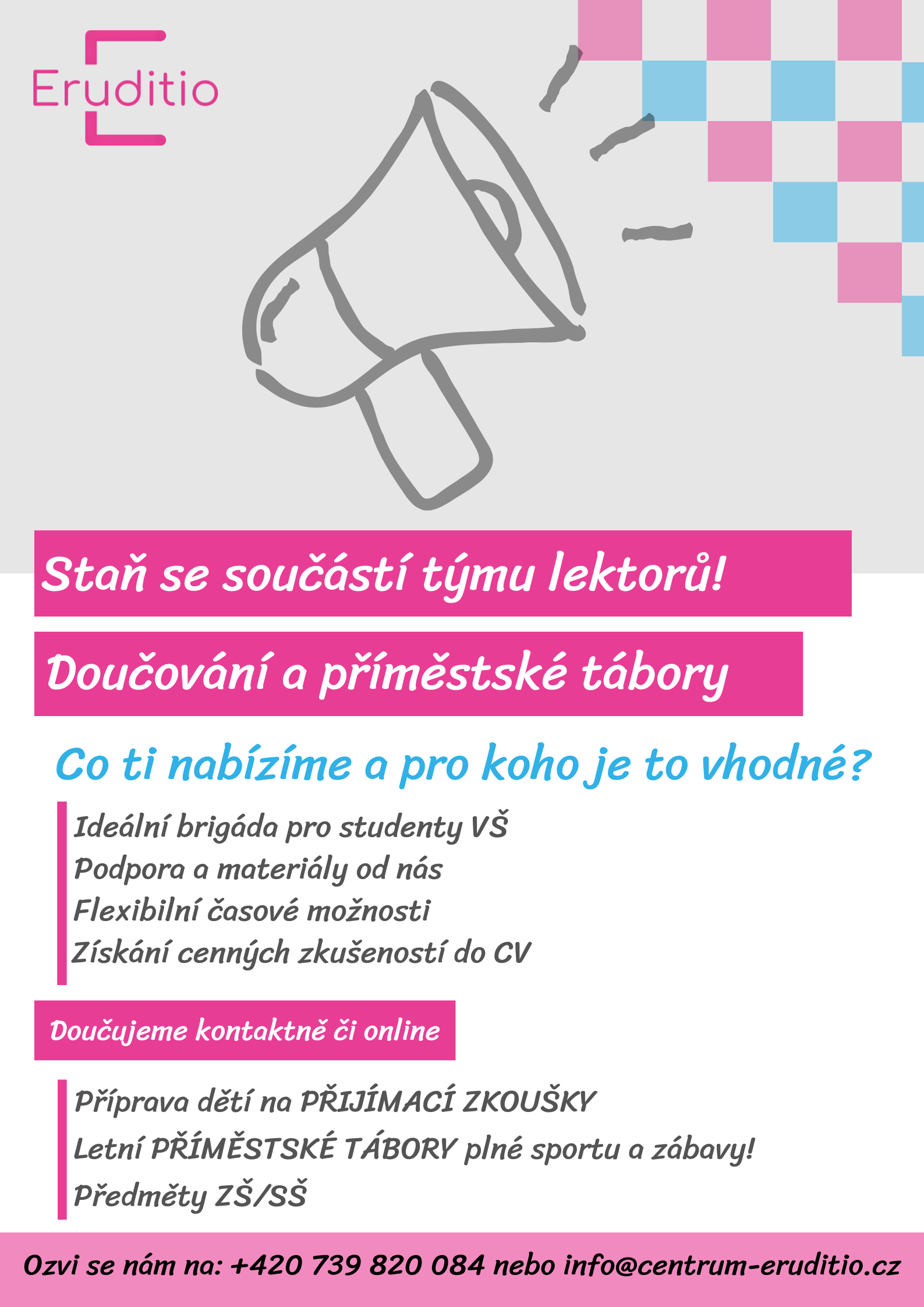 V případě zájmu se nám ozvi na: +420 739 820 084 nebo info@centrum-eruditio.cz